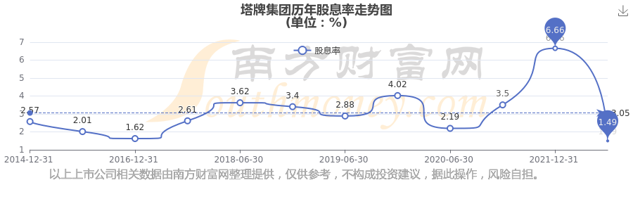 塔牌集團(tuán)歷年股息率走勢(shì)如下圖: