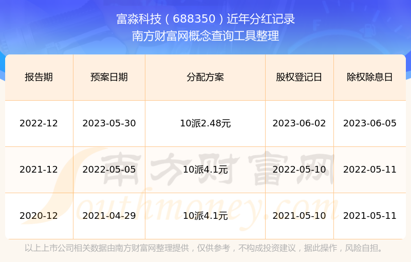 近年富淼科技分紅派息情況如下表所示: