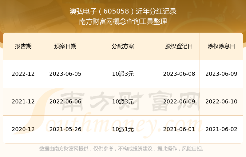澳弘電子最新一次公布的分紅方案:10派3元。