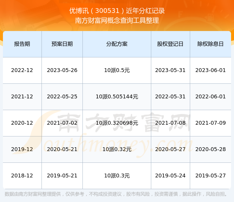 優(yōu)博訊最新一次公布的分紅方案:10派0.5元。