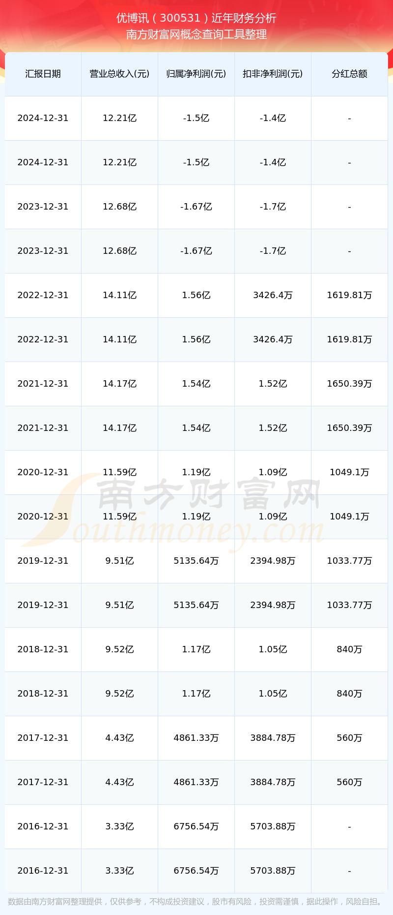 優(yōu)博訊歷年分紅派息情況如下表所示: