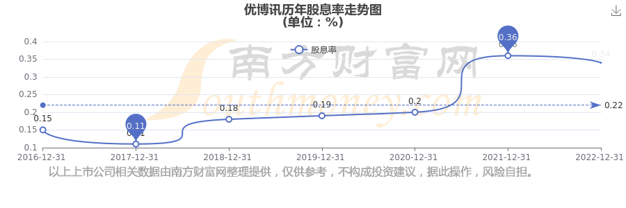 優(yōu)博訊歷年股息率走勢(shì)如下圖: