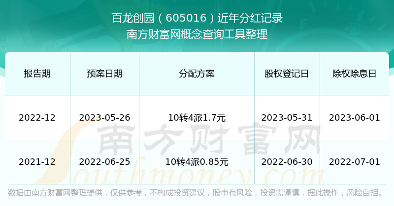 近年百龍創(chuàng)園分紅派息情況如下表所示: