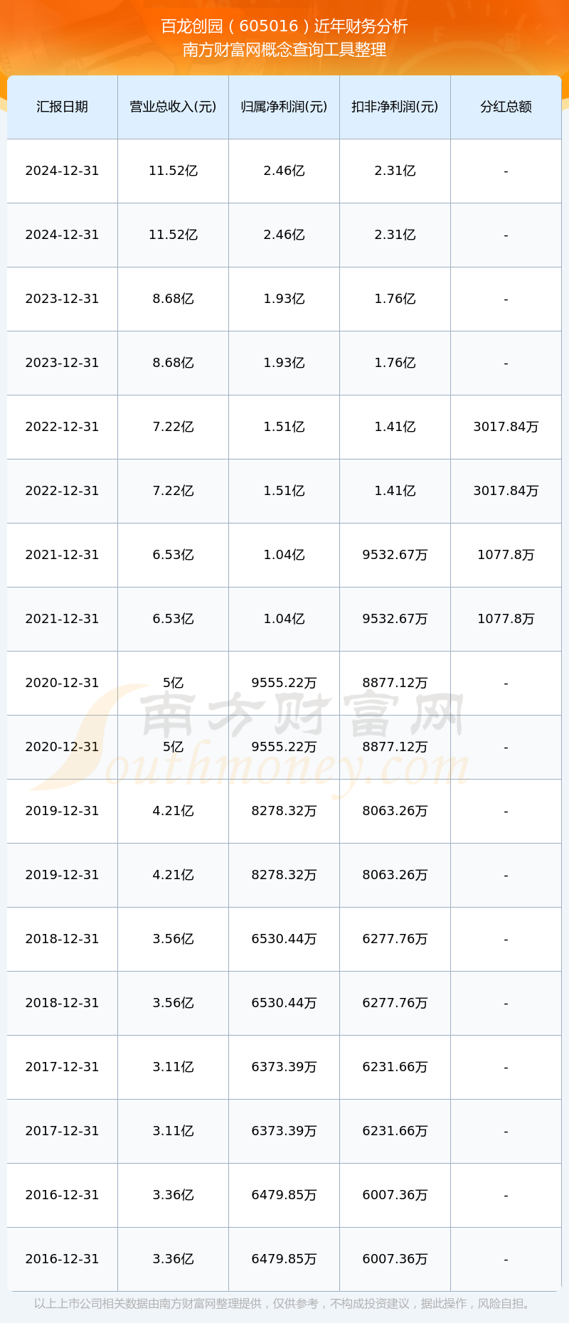 2024年報顯示,百龍創(chuàng)園實現(xiàn)營收11.52億,同比增長32.64%;凈利潤2.46億,同比增長27.26%;毛利率33.65%。