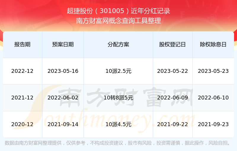 超捷股份最新一次公布的分紅方案:10派2.5元。