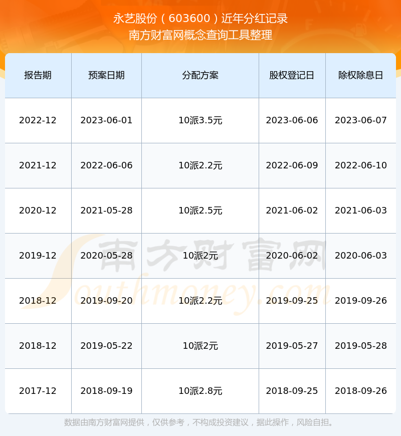 永藝股份最新一次公布的分紅方案為10派3.5元。本次權(quán)益分派股權(quán)登記日為2023年6月6日,除權(quán)除息日為2023年6月7日,派息日為2023年6月7日。