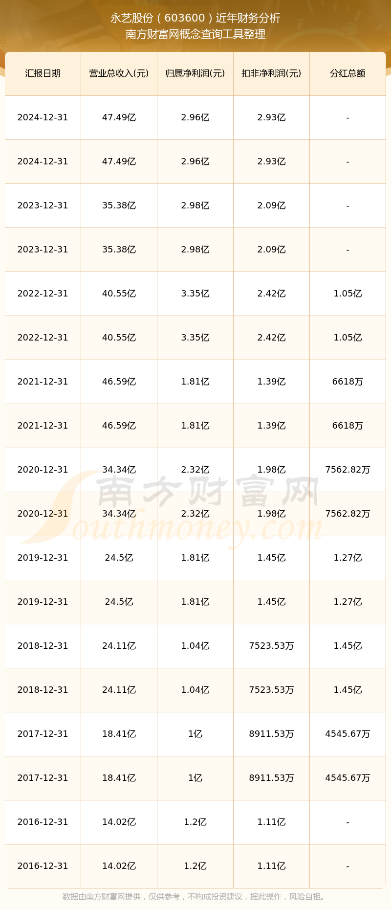 近年永藝股份分紅派息情況如下表所示: