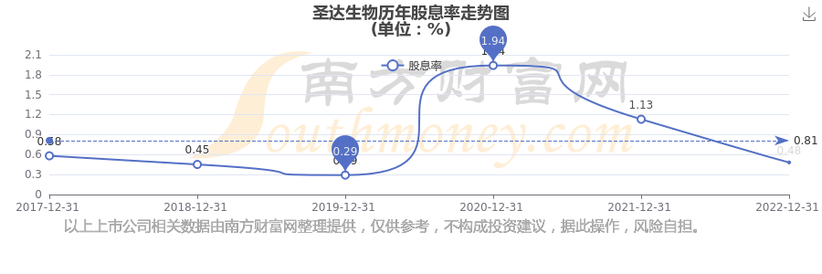 圣達生物最新一次公布的分紅方案:10派0.6元。