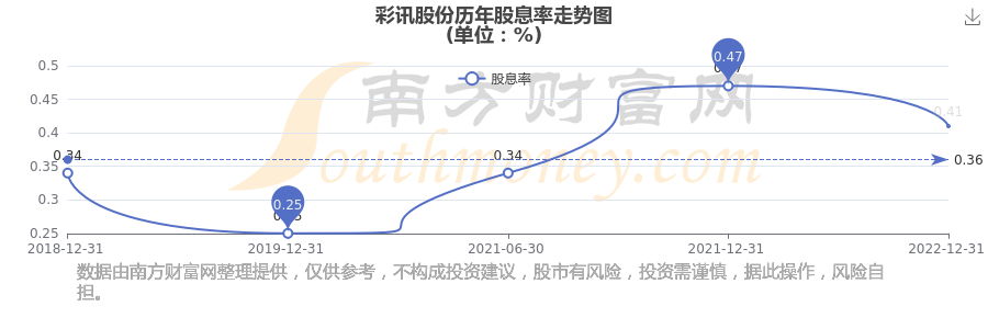 彩訊股份歷年股息率走勢(shì)如下圖: