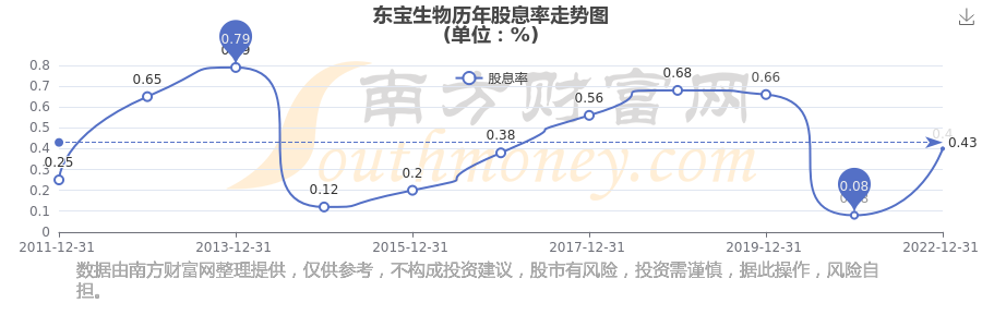 近年?yáng)|寶生物分紅派息情況如下表所示: