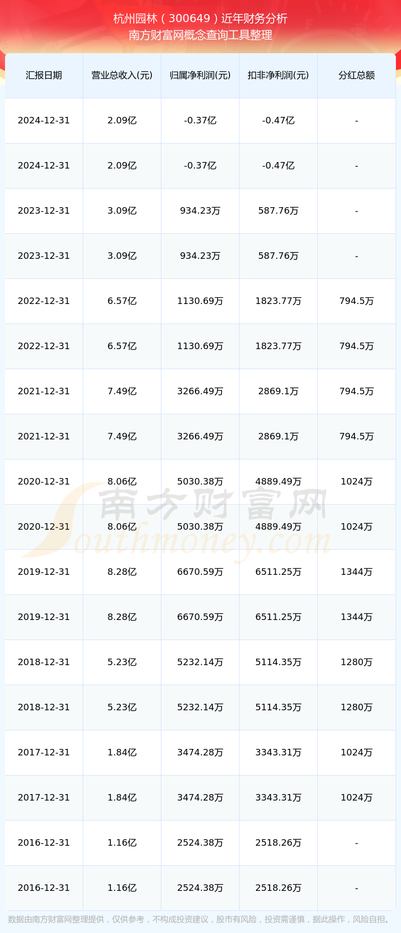 杭州園林2024年總營(yíng)收2.09億,同比增長(zhǎng)-32.39%;凈利潤(rùn)-3717.3萬(wàn),同比增長(zhǎng)-497.9%;銷售毛利率8.43%。