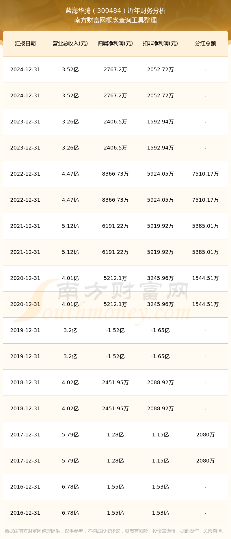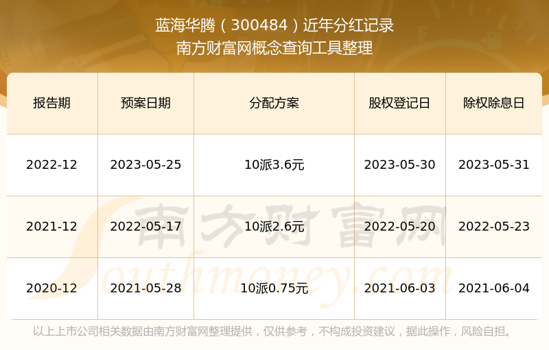 藍(lán)海華騰歷年分紅派息情況如下表所示: