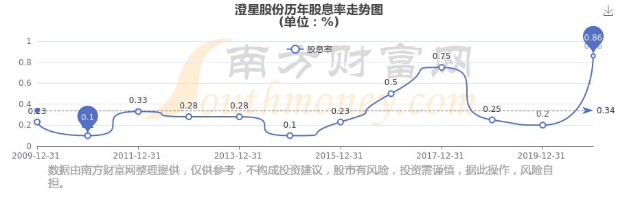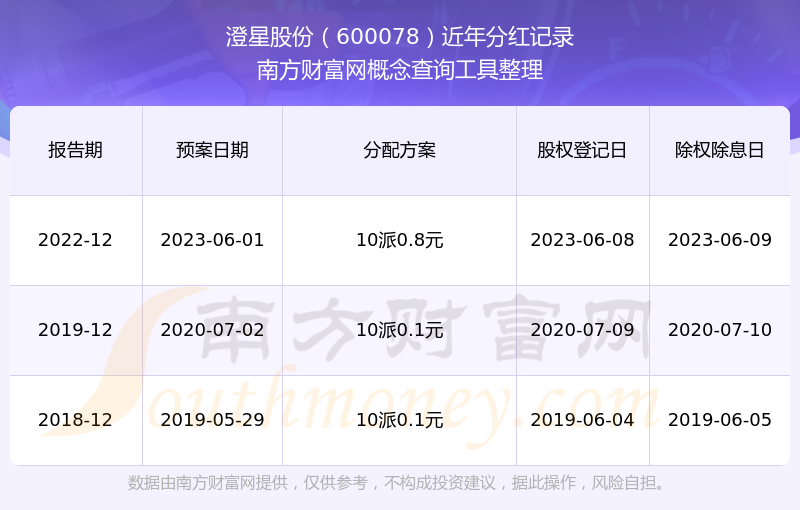 澄星股份最新一次公布的分紅方案為10派0.8元。本次權益分派股權登記日為2023年6月8日,除權除息日為2023年6月9日,派息日為2023年6月9日。