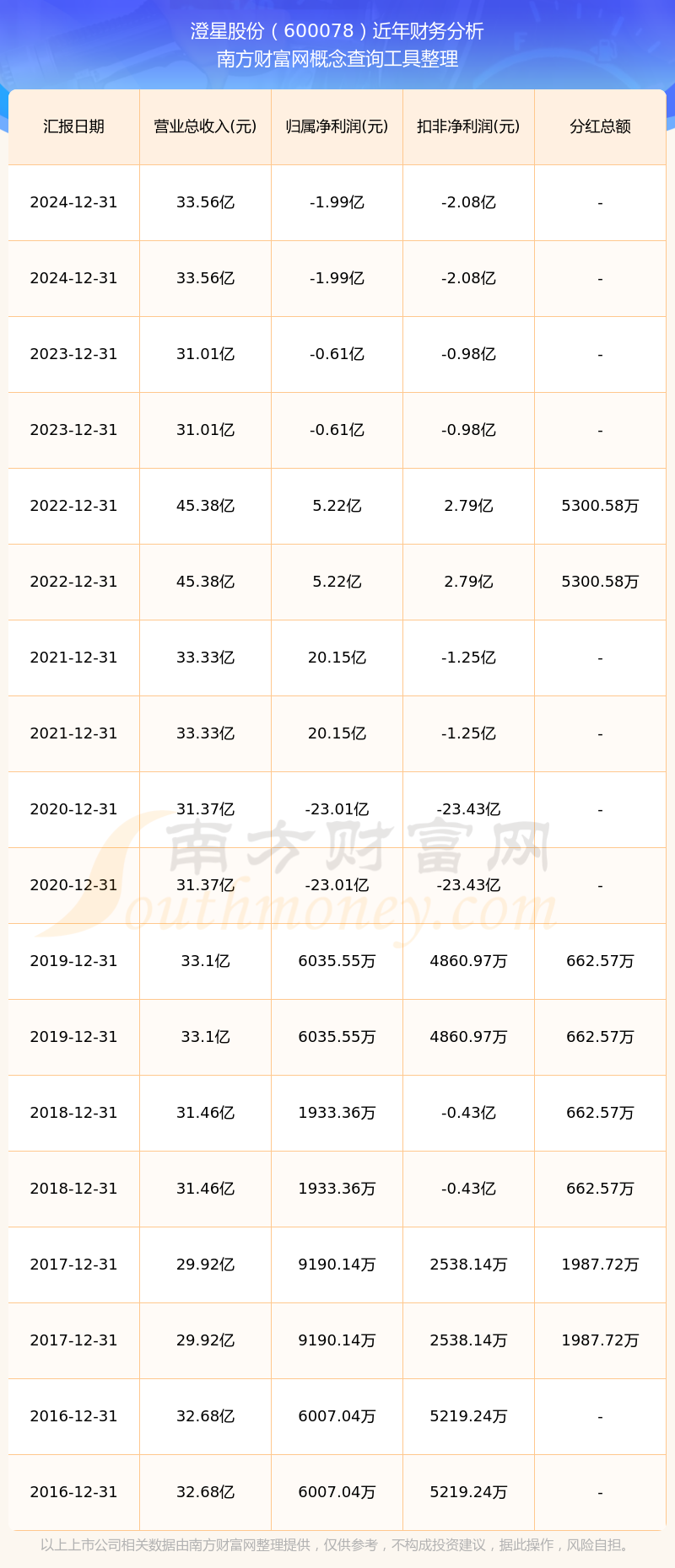2024年報顯示,澄星股份實現(xiàn)營收33.56億,同比增長8.22%;凈利潤-1.99億,同比增長-226.98%;毛利率6.94%。