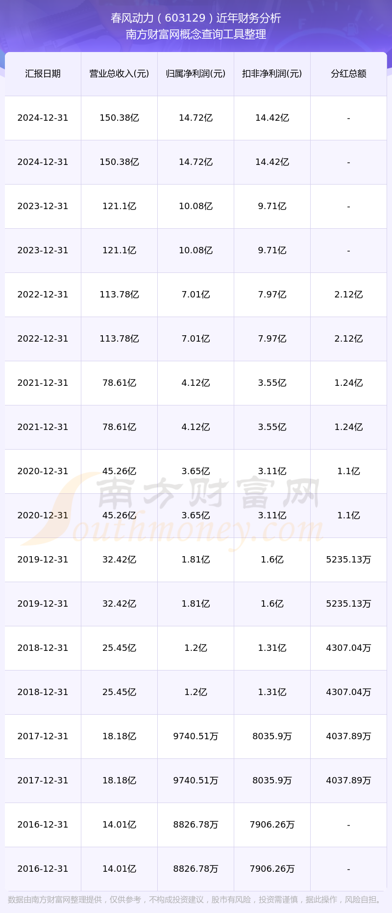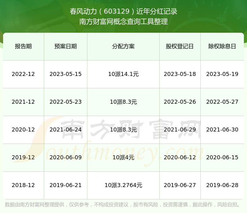 春風(fēng)動(dòng)力歷年分紅派息情況如下表所示: