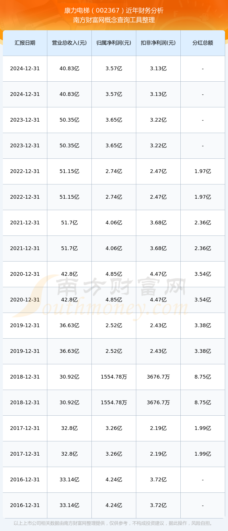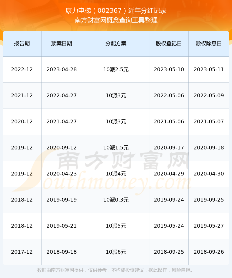 近年康力電梯分紅派息情況如下表所示: