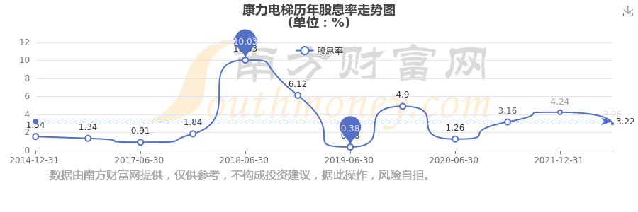 康力電梯歷年股息率走勢(shì)如下圖:
