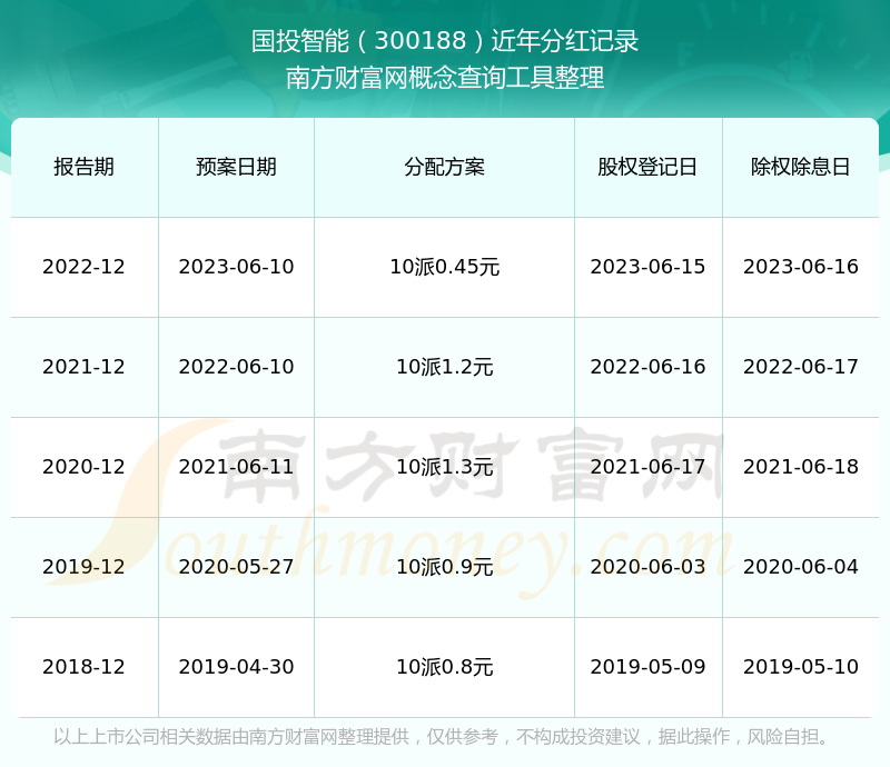 國(guó)投智能最新一次公布的分紅方案:10派0.45元。