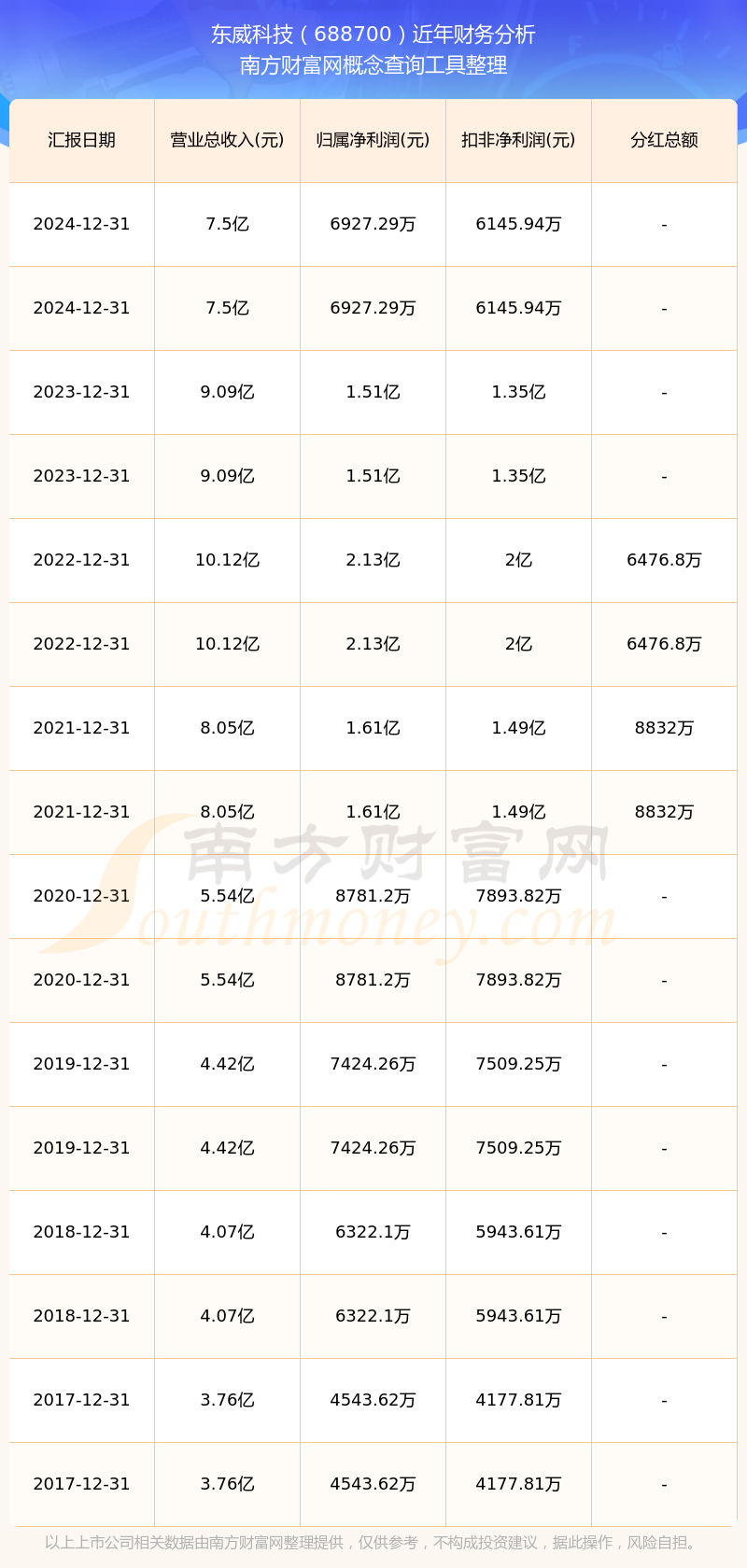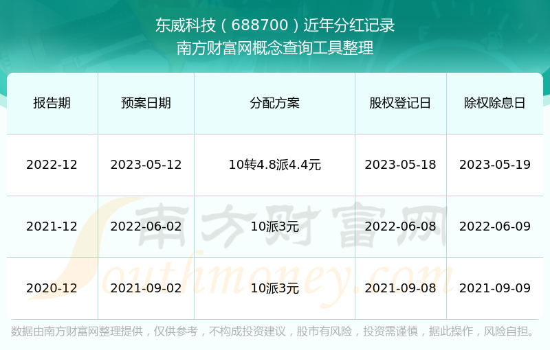 東威科技最新一次公布的分紅方案為10轉(zhuǎn)4.8派4.4元。本次權(quán)益分派股權(quán)登記日為2023年5月18日,除權(quán)除息日為2023年5月19日,派息日為2023年5月19日。
