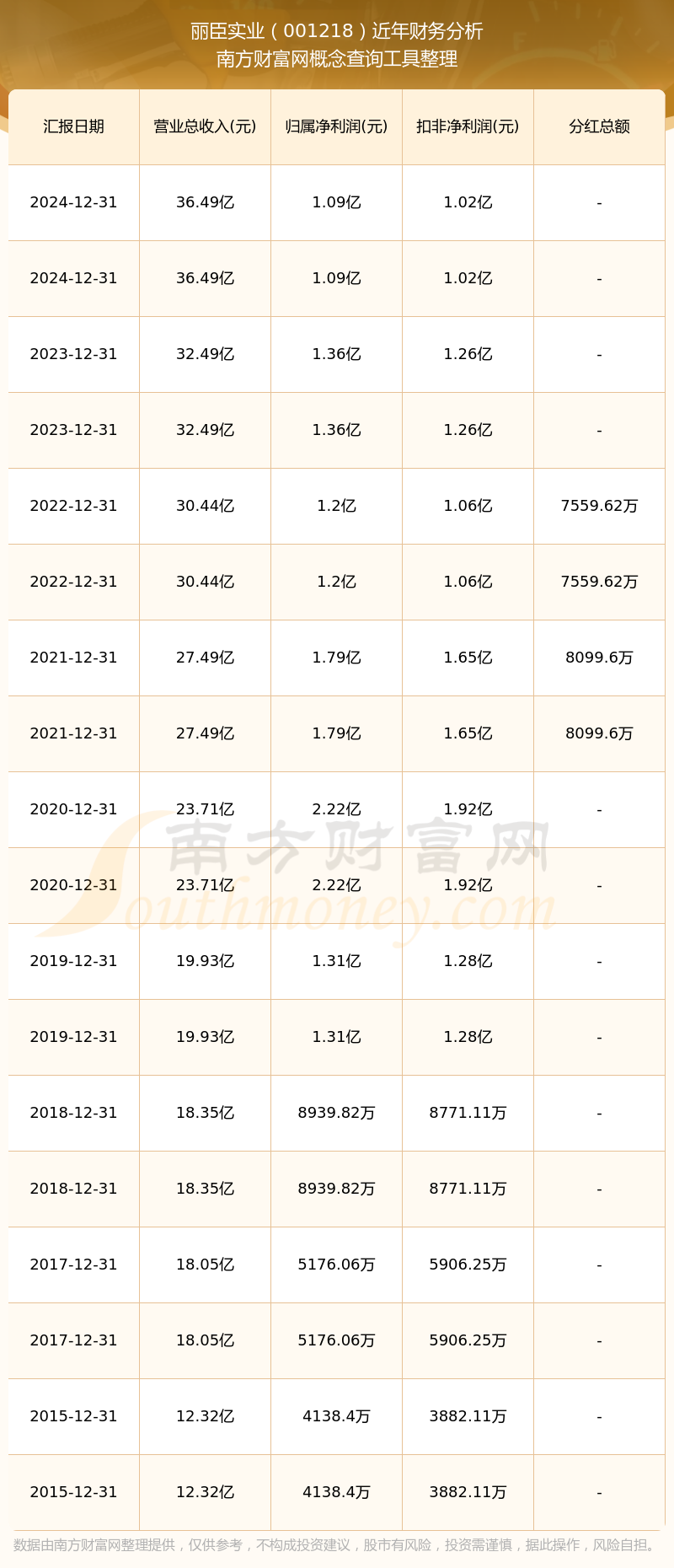 近年麗臣實(shí)業(yè)分紅派息情況如下表所示: