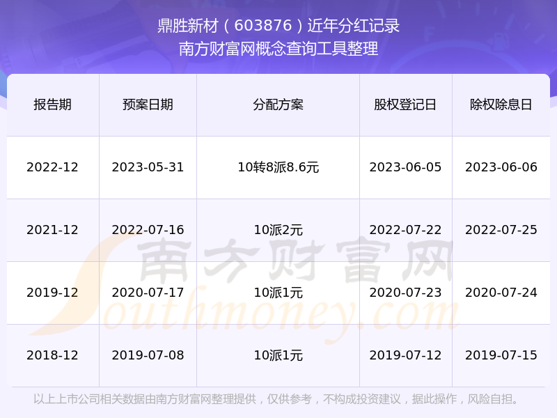 鼎勝新材最新一次公布的分紅方案:10轉(zhuǎn)8派8.6元。
