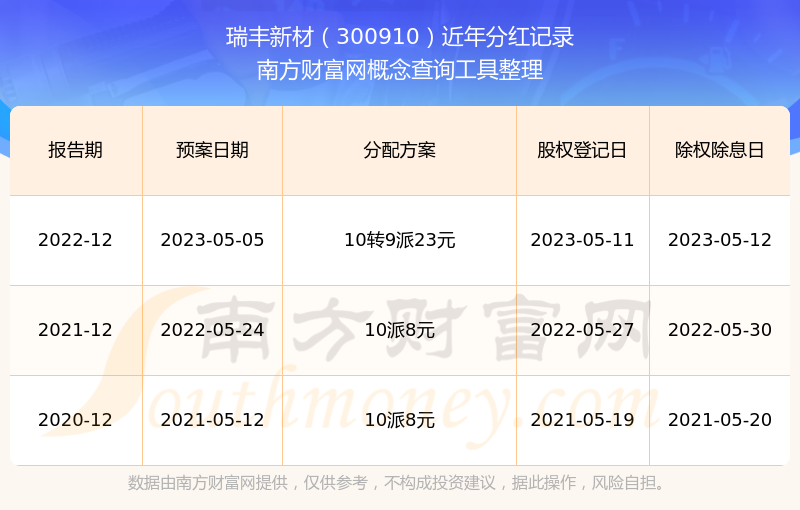 近年瑞豐新材分紅派息情況如下表所示: