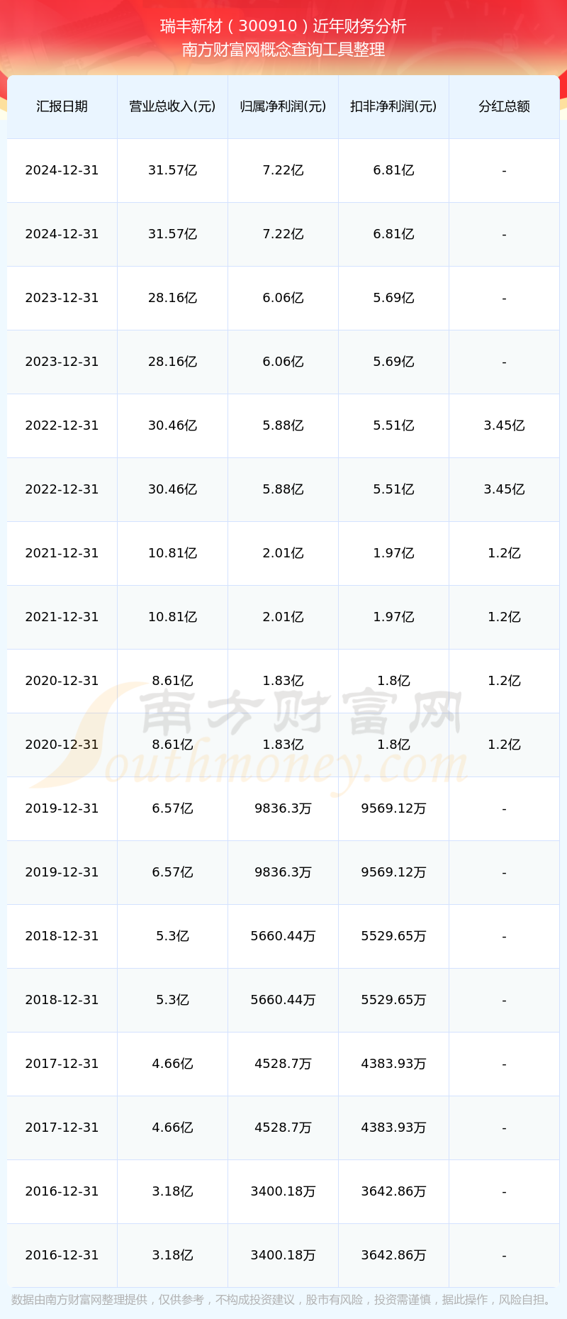 瑞豐新材公司2024年實(shí)現(xiàn)營(yíng)收31.57億元,凈利潤(rùn)7.22億元,毛利率35.82%。