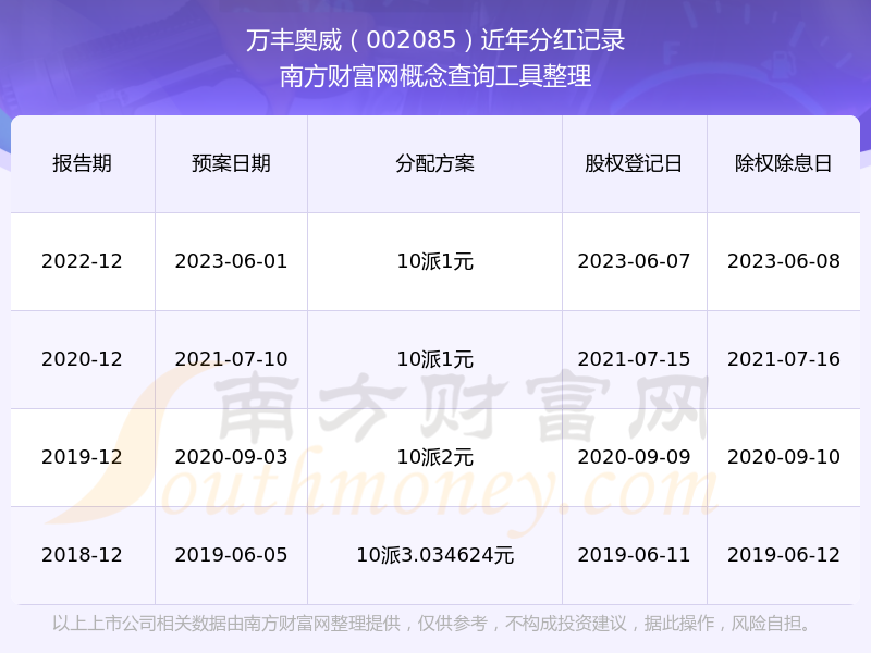 萬豐奧威最新一次公布的分紅方案:10派1元。