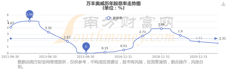 萬豐奧威歷年股息率走勢如下圖: