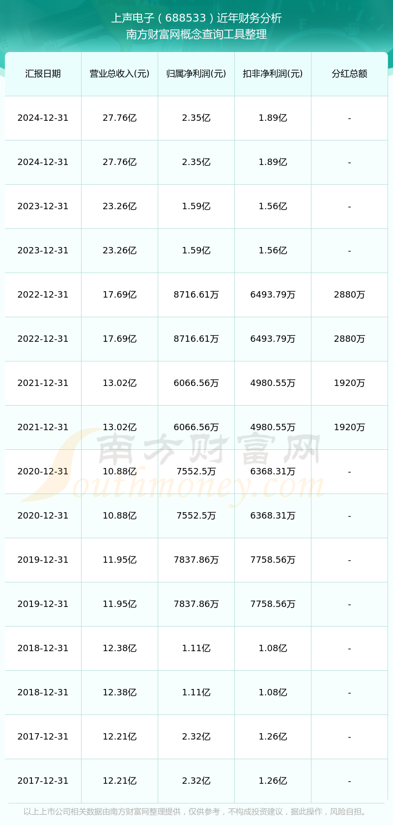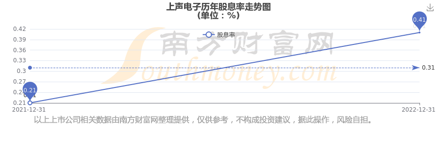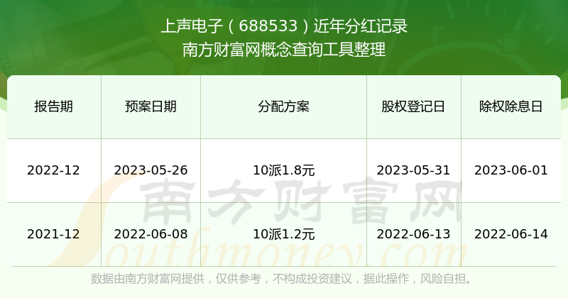 上聲電子最新一次公布的分紅方案為10派1.8元。本次權(quán)益分派股權(quán)登記日為2023年5月31日,除權(quán)除息日為2023年6月1日,派息日為2023年6月1日。