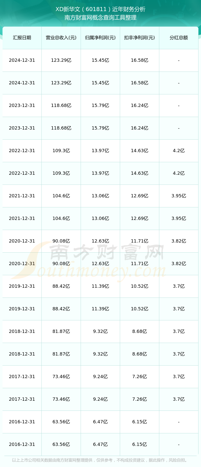 近年XD新華文分紅派息情況如下表所示: