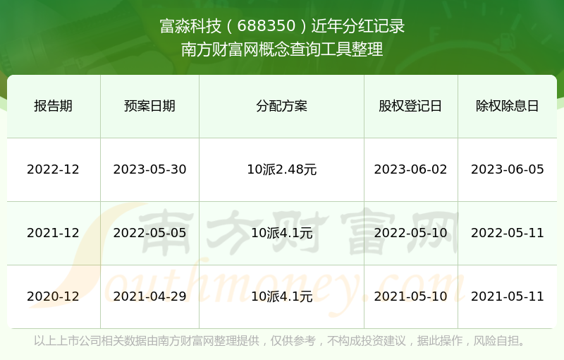 富淼科技最新一次公布的分紅方案:10派2.48元。