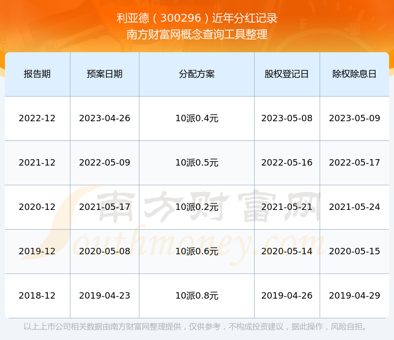 利亞德最新一次公布的分紅方案:10派0.4元。