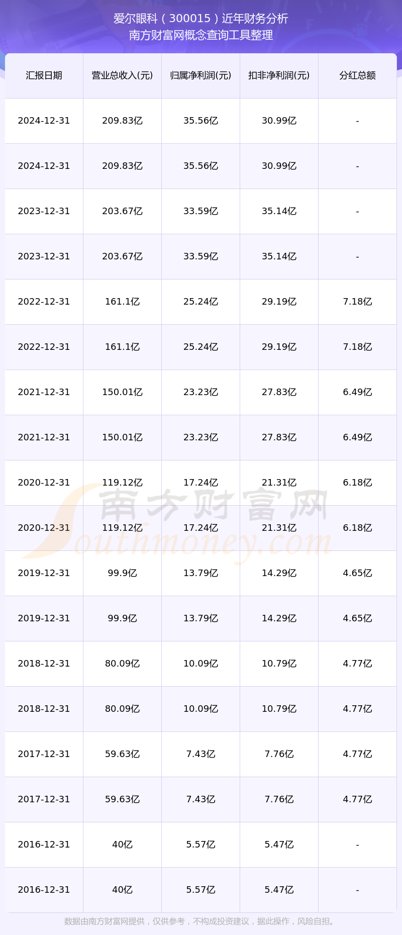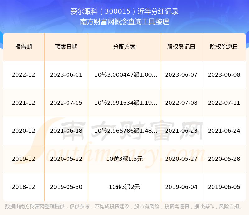 近年愛(ài)爾眼科分紅派息情況如下表所示: