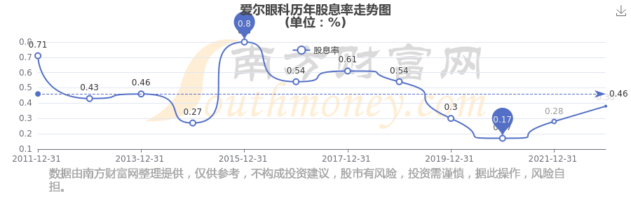 愛(ài)爾眼科歷年股息率走勢(shì)如下圖:
