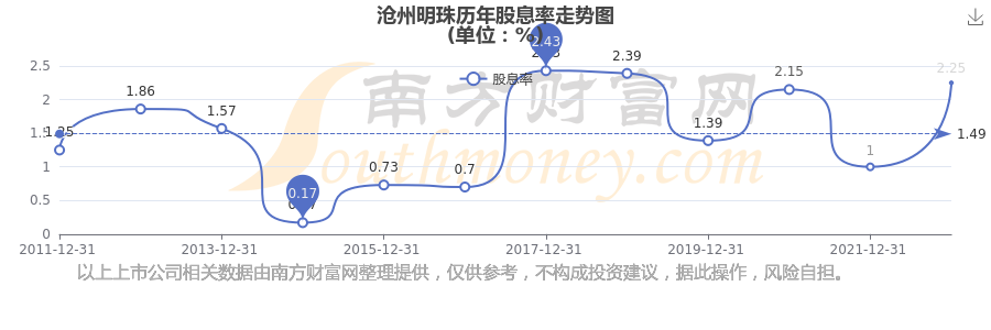 滄州明珠最新一次公布的分紅方案為10派1元。本次權(quán)益分派股權(quán)登記日為2023年5月25日,除權(quán)除息日為2023年5月26日,派息日為2023年5月26日。