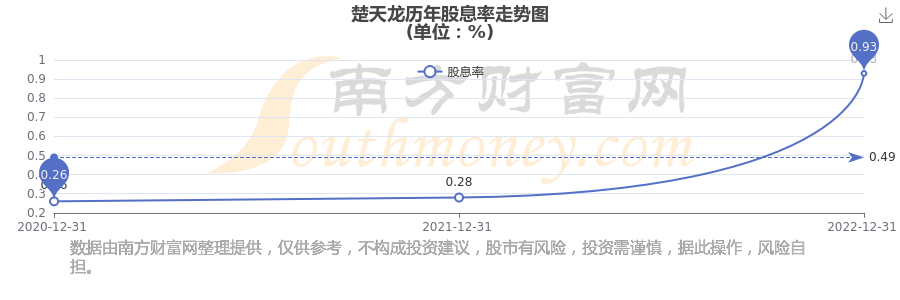 楚天龍最新一次公布的分紅方案為10派1.8元。本次權(quán)益分派股權(quán)登記日為2023年5月19日,除權(quán)除息日為2023年5月22日,派息日為2023年5月22日。