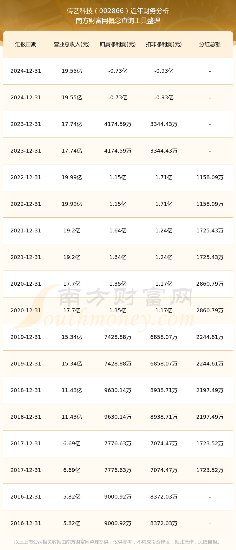 傳藝科技?xì)v年分紅派息情況如下表所示:
