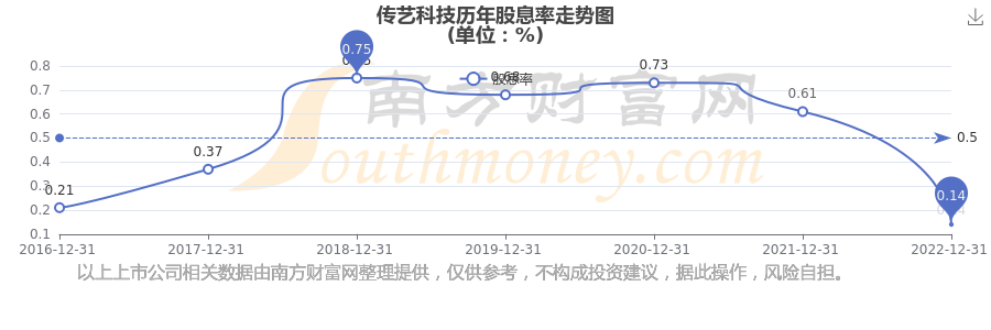 傳藝科技?xì)v年股息率走勢(shì)如下圖:
