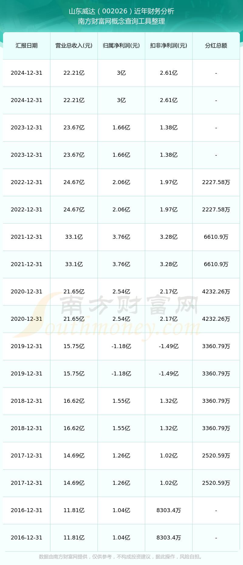 山東威達(dá)歷年分紅派息情況如下表所示:
