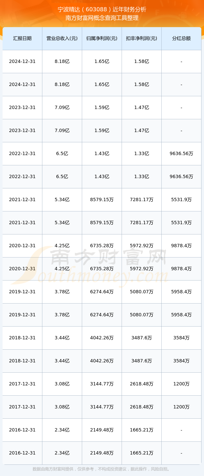 2024年報(bào)顯示,寧波精達(dá)實(shí)現(xiàn)營(yíng)收8.18億,同比增長(zhǎng)15.38%;凈利潤(rùn)1.65億,同比增長(zhǎng)3.37%;毛利率41.97%。