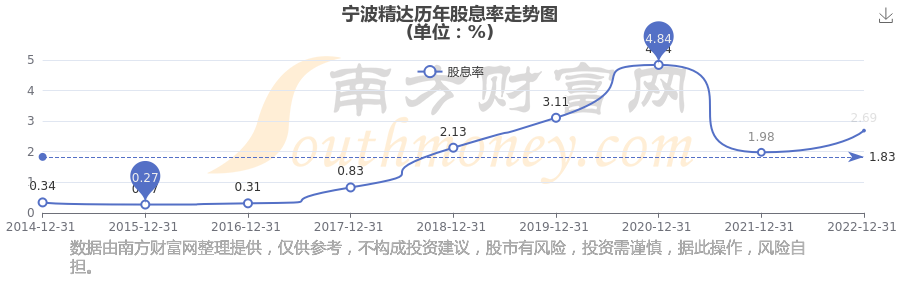 寧波精達(dá)歷年股息率走勢(shì)如下圖: