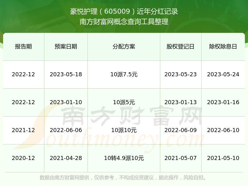 豪悅護(hù)理605009分紅時(shí)間: