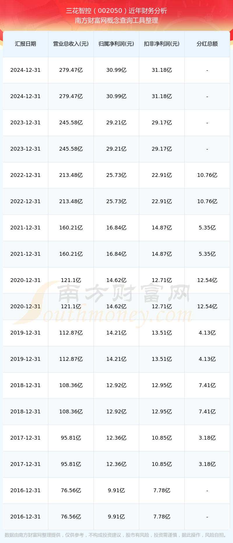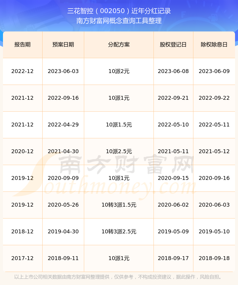 近年三花智控分紅派息情況如下表所示: