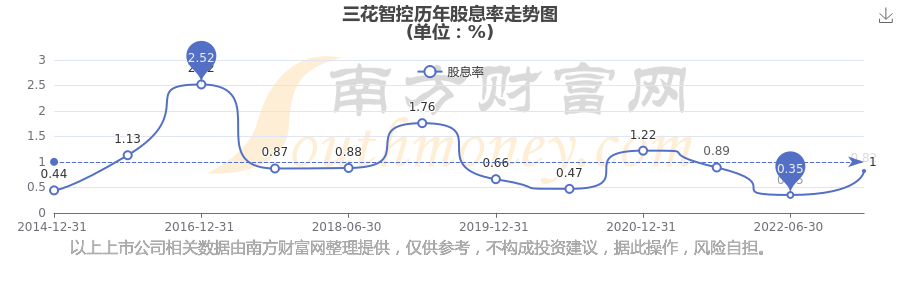 三花智控歷年股息率走勢(shì)如下圖: