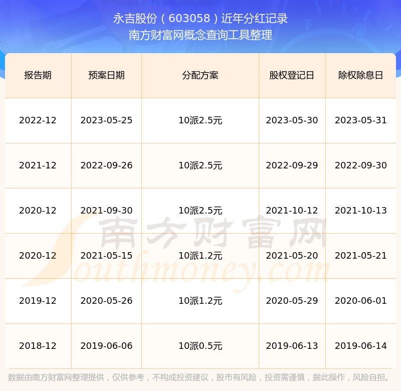 永吉股份最新一次公布的分紅方案:10派2.5元。