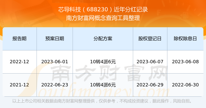 芯導科技最新一次公布的分紅方案:10轉4派6元。