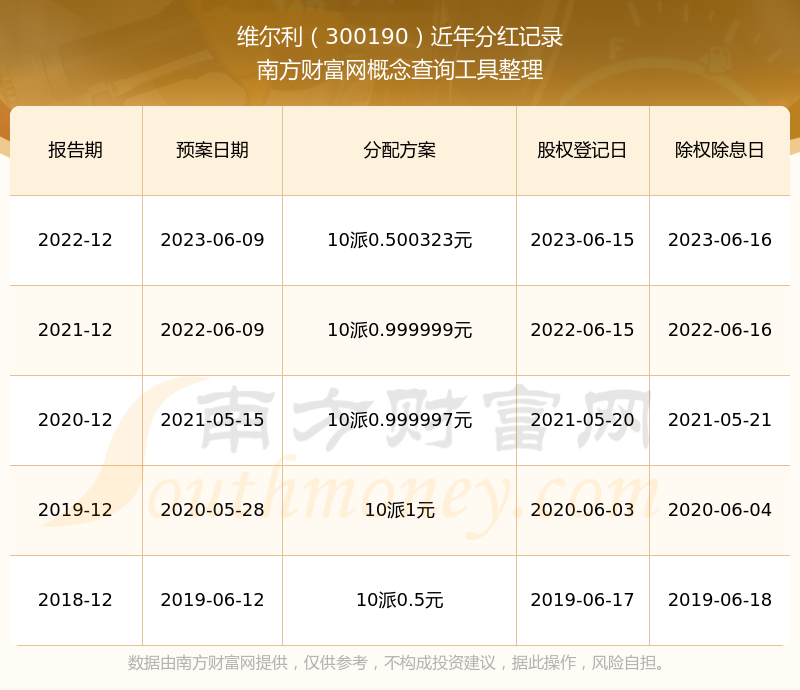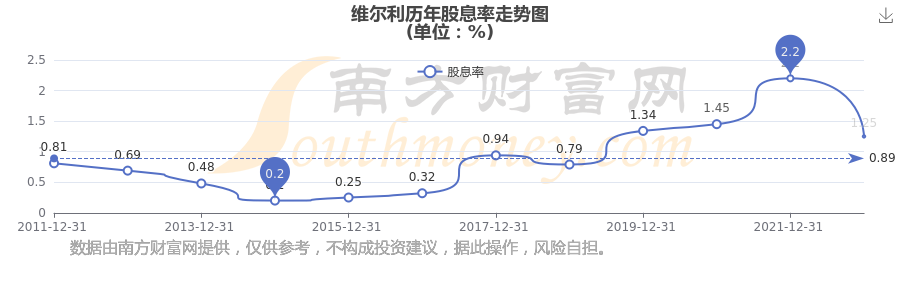維爾利最新一次公布的分紅方案:10派0.500323元。