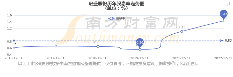 宏盛股份歷年股息率走勢(shì)如下圖: