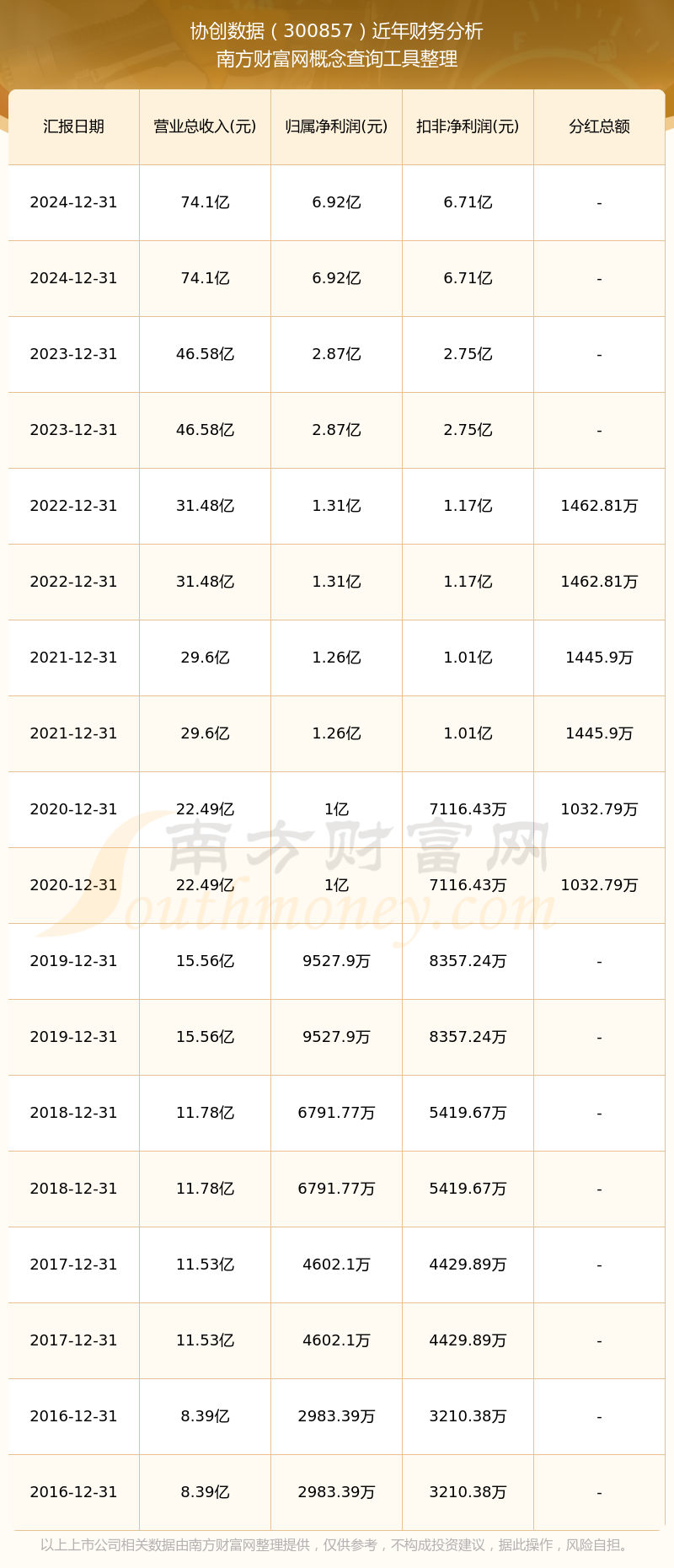 近年協(xié)創(chuàng)數(shù)據(jù)分紅派息情況如下表所示: